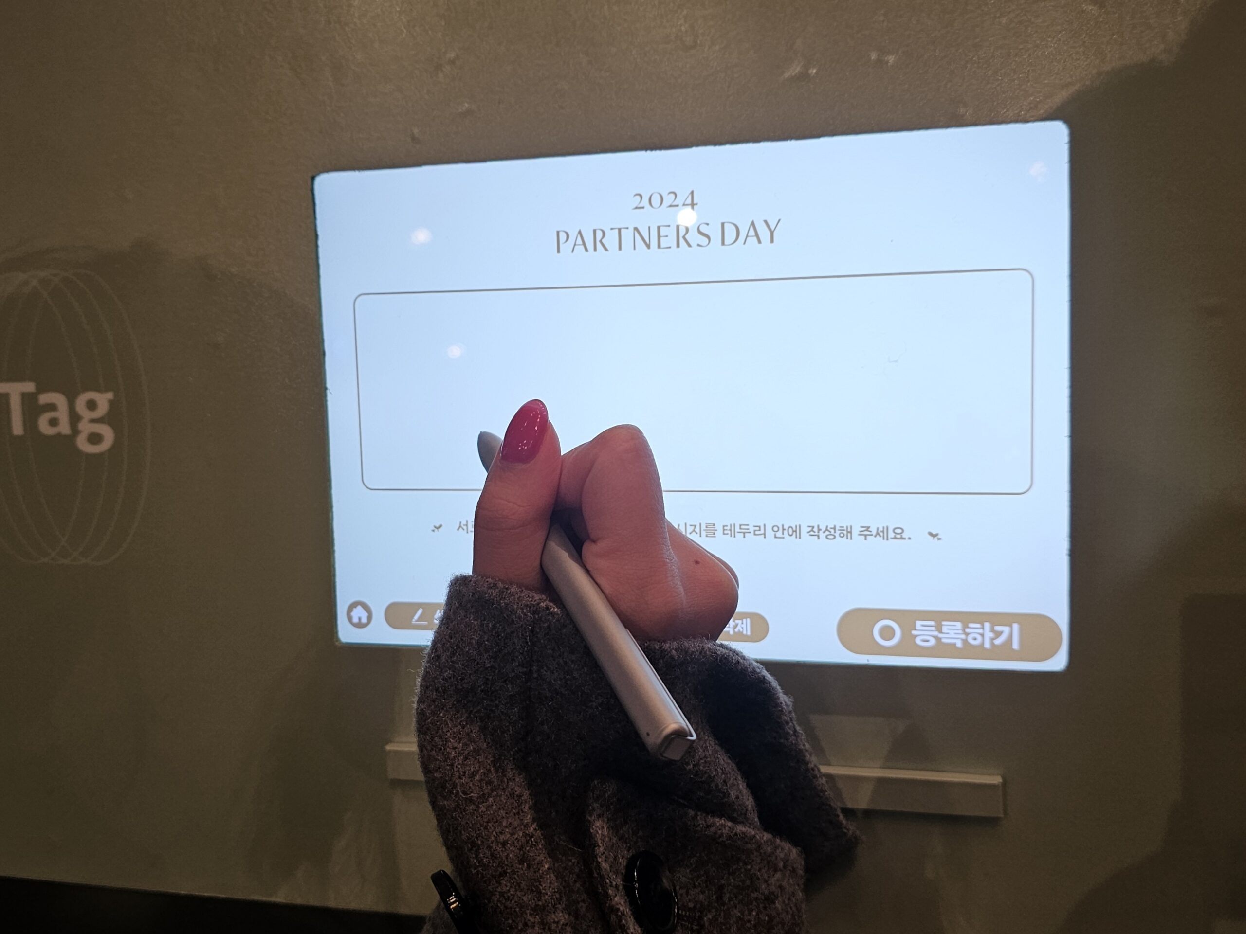 방명록에 작성한 메시지는 포토존의 LED 포토월로 전송 되어